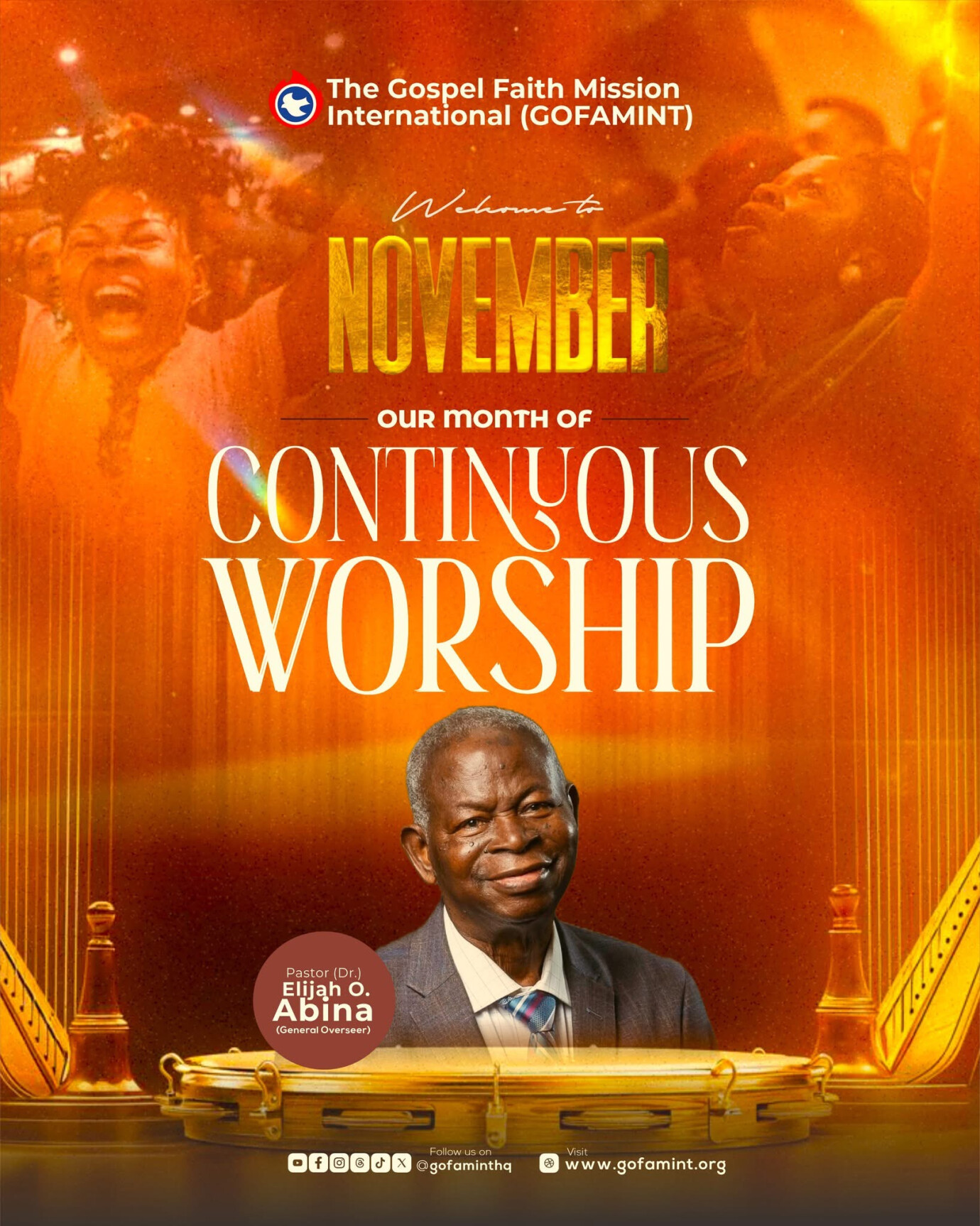 THE GOSPEL FAITH MISSION INTERNATIONAL PROPHETIC DECLARATION FOR THE MONTH OF NOVEMBER 2025OUR MONTH OF CONTINUOUS WORSHIP“Serve the LORD with gladness; Come before His presence with singing.” (Psalm 100:2...